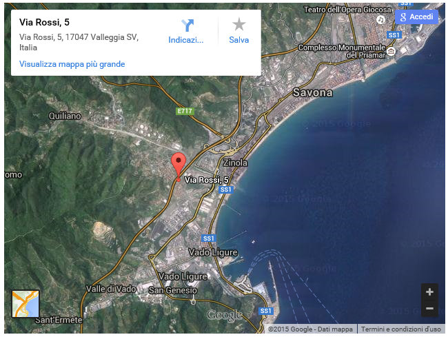 Contatti Chi รจ SM sospensioni? SM sospensioni sito: http://www.smsospensioni.com email: info@smsospensioni.com Sede: via Giuseppe Rossi 5H Valleggia di Quiliano 17047 (SV) Italy Tel. 393 288 3100 P.I. 01338460098 Mappa per raggiungerci: Visualizzazione ingrandita della mappa Related Images: